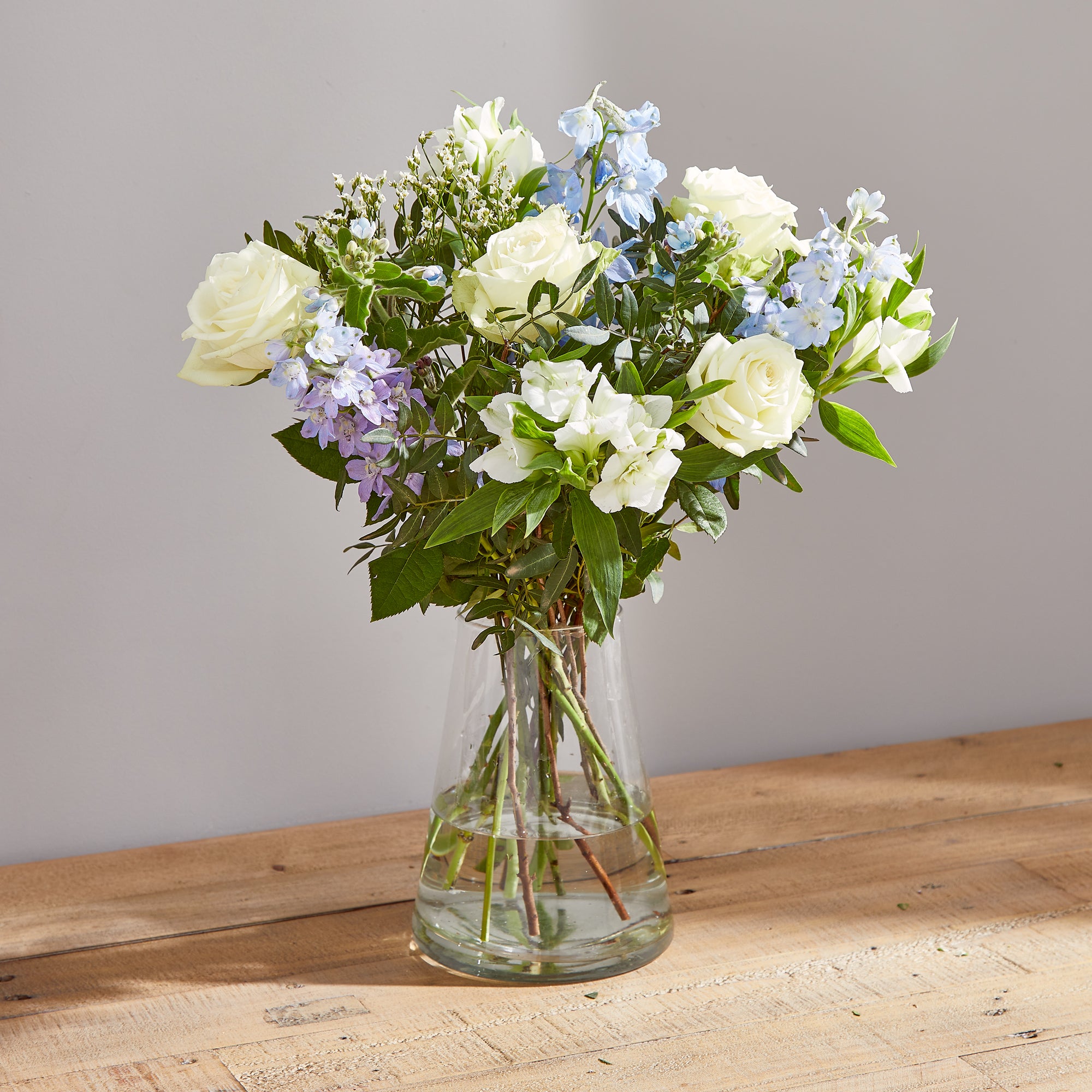 It’s a boy! Celebrate new baby’s safe arrival with this gorgeous bouquet, a mix of powder blue delphiniums and oxypetalum together with white roses, alstroemeria and limonium. While it’s the perfect treat to send to new mums, our sensational Baby Boy bouquet makes a thoughtful gift for any other occasion, too.