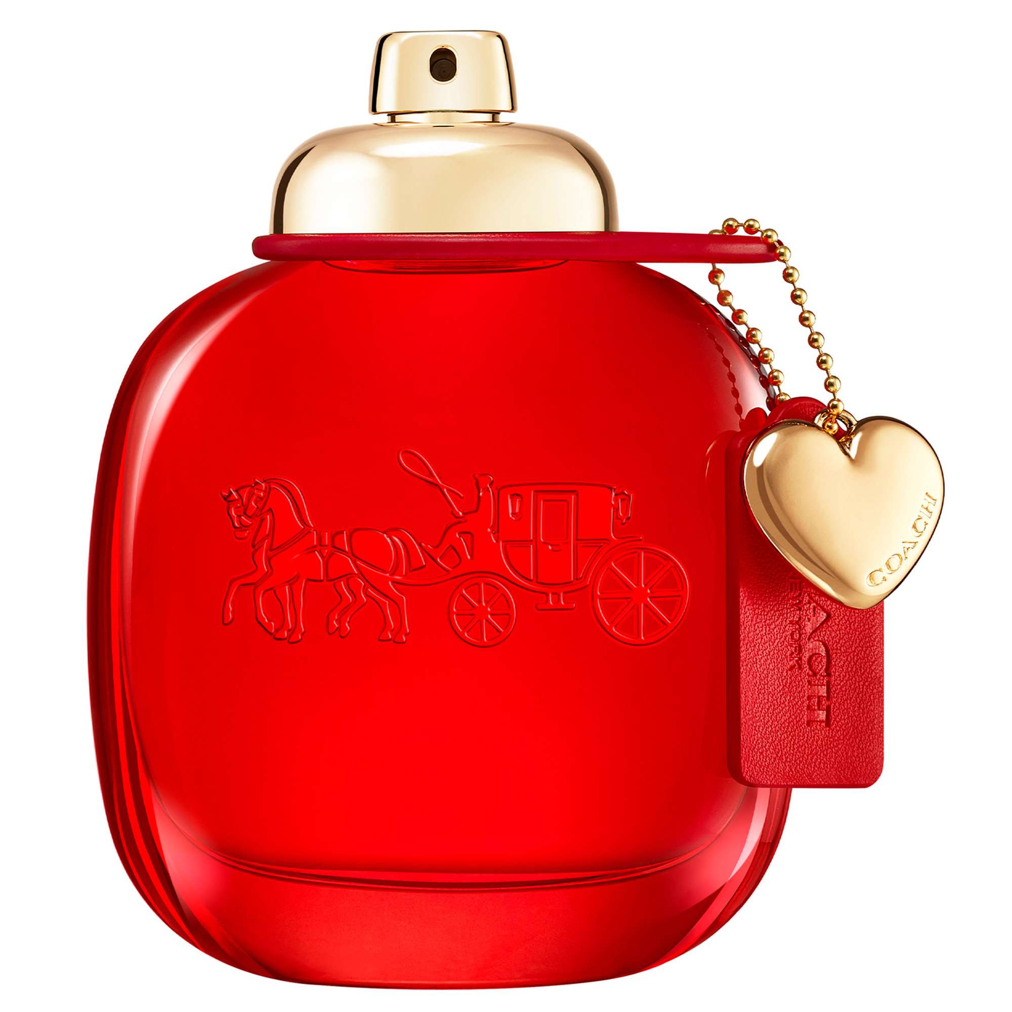 Coach Love is inspired by the vibrant and universal feeling of love and all of the unique ways we express it. The floral, fruity eau de parfum opens with an invigorating top note of wild strawberry, accentuated by a rich and velvety heart note of red velvet rose, before drying down to warm cedarwood. It is finished with the house’s iconic turnlock top, and classic gold hardware, including a sweet heart charm. Featuring Coach’s iconic Horse and Carriage logo, the outer pack is finished with a subtle leather texture in a rich red hue–a reference to the house’s heritage in leathercraft. Fragrance Family – Floral Fruity – Top Notes: Wild Strawberry – Heart Notes: Red Velvet Rose – Base Notes: Cedarwood