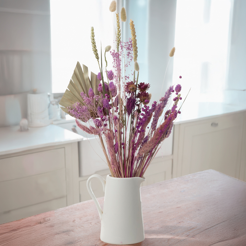 Treat them to this stylish arrangement of specially selected dried flowers and grasses in natural and lilac shades.