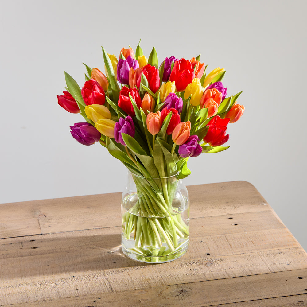 Send Spring bliss with this mixed bouquet of tulips in fresh, seasonal hues of yellow, orange and purple. The perfect way to brighten someone’s day. Send today with next-day and chosen-day delivery.