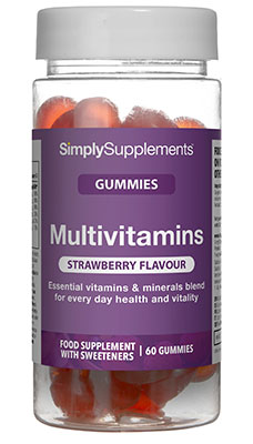 Strawberry-flavoured gummies with Vitamins A, B, C, D and E with zinc and iodine