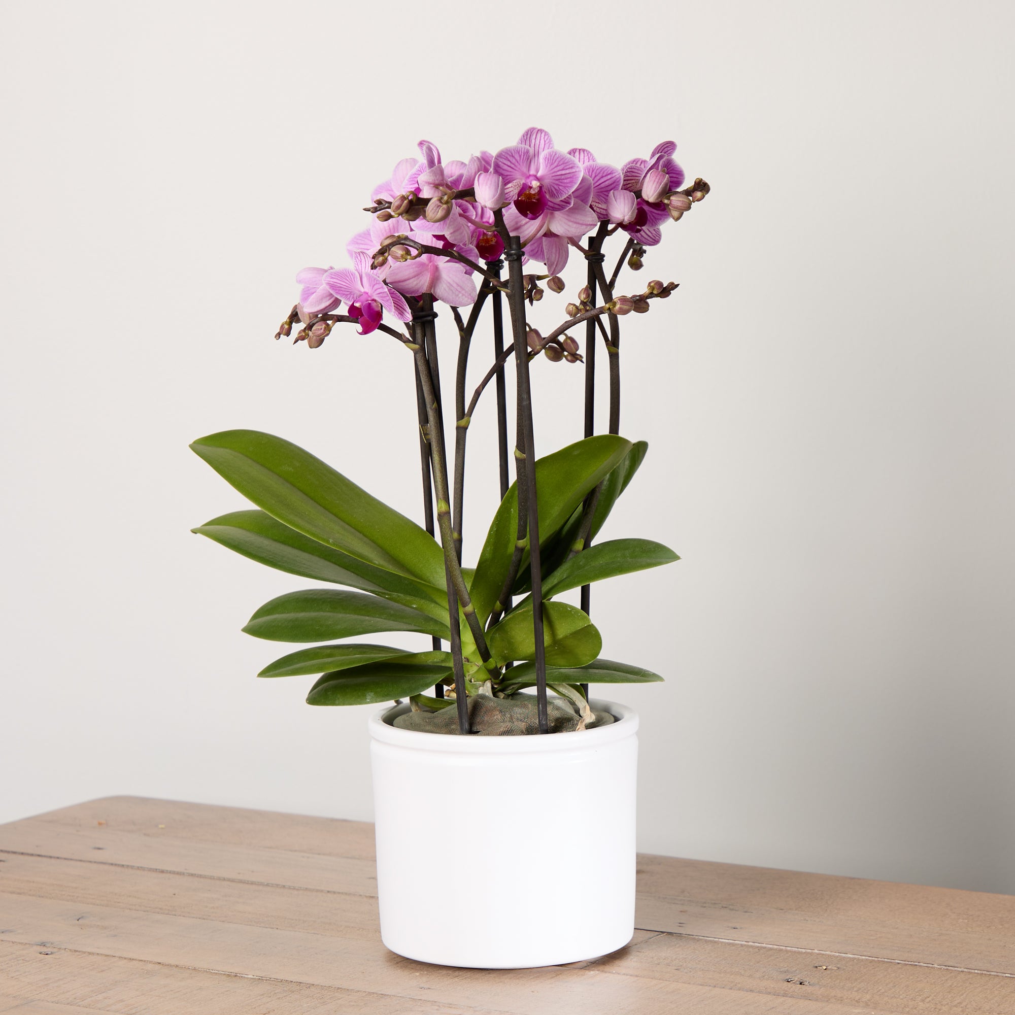 Send a little joy in the post with this bright pink orchid and ceramic white pot. It’s a beautiful gift for flower lovers. Order today with next-day delivery.