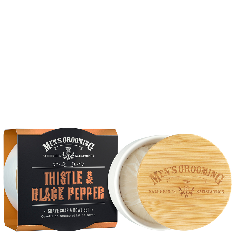 Scottish Fine Soaps Men’s Grooming Thistle & Black Pepper Shave Soap & Bowl Set 100g