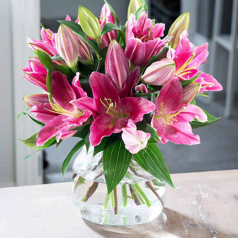 Beautifully pink oriental lilies arrive ready to arrange to create that elegant touch in your home. The perfect gift for the budding florist.